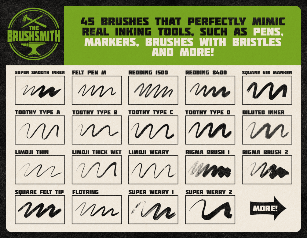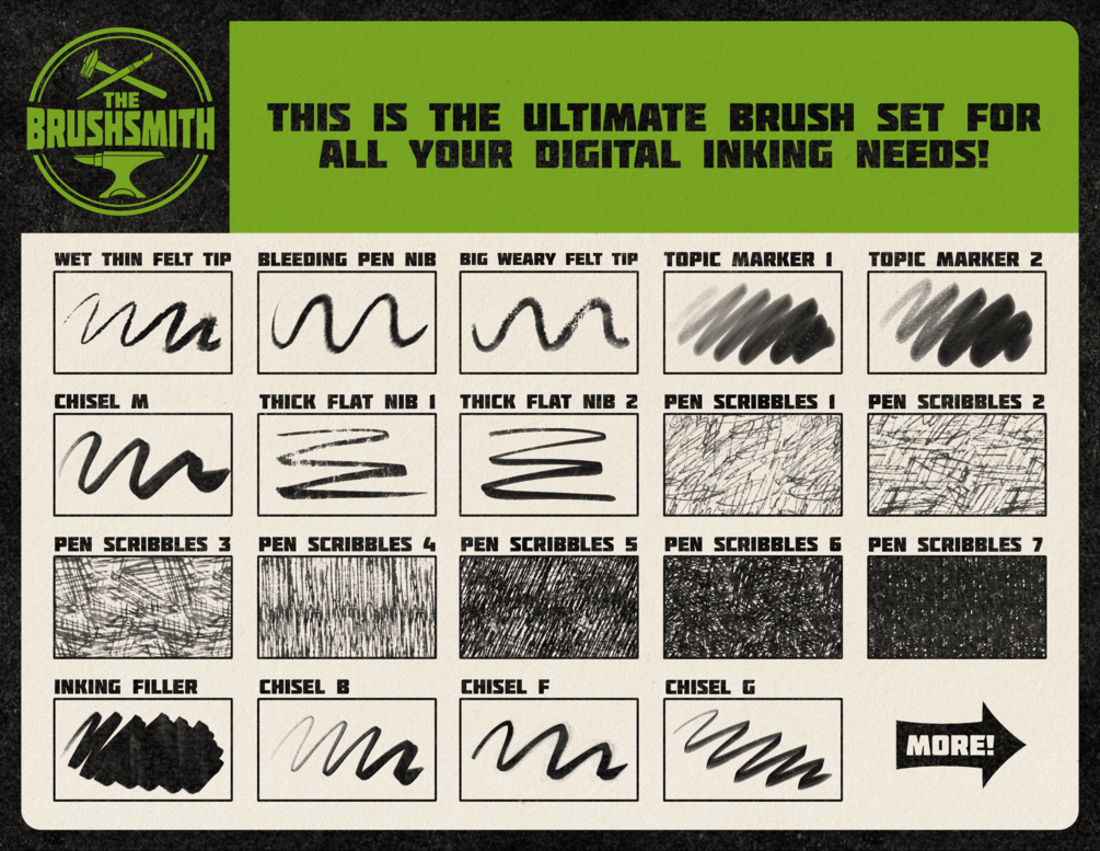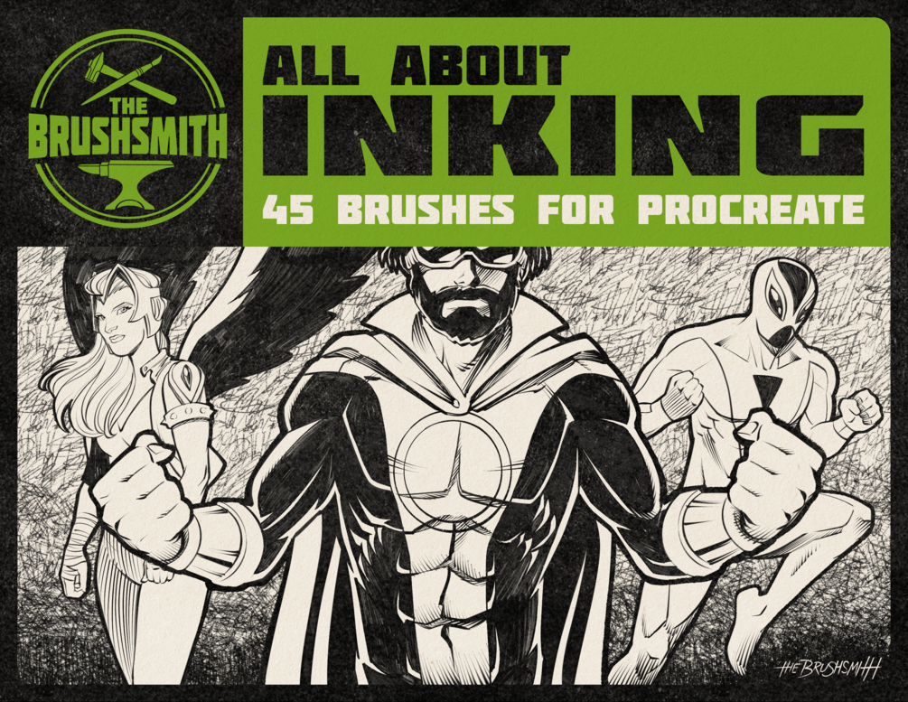 All about inking is a brush set for Procreate that contains 45 ultra realistic brushes that mimic the best tools for inking on paper in real life, translated to the digital world. Everything was made from real inking tools on paper, scanned and converted into this amazing brush collection that is perfect for comic-book artists and all kind of illustrators!